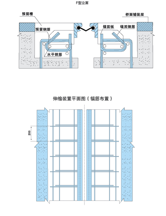 例2、GQF~F80(NR)表示交通行業(yè)標準推薦的F型、伸縮量為80mm天然肢型伸縮裝置。