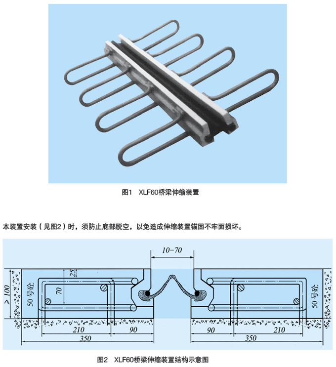 設計伸縮置為0^60mm,其結構簡單、堅固附用、行車平衡,適用于中小橋梁。(圖1)