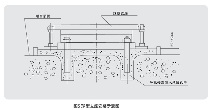 a安裝支座板及地腳螵栓:在下支座板四角用鋼楔塊調(diào)整支座水平,并使下支座板底面髙出橋嫌頂面20 50mm,找正支座縱、橫中線的位置,使之符合設計要求。用環(huán)氣樹脂砂漿灌注地腳嫌栓孔及支座底面墊層。 (圖5 )